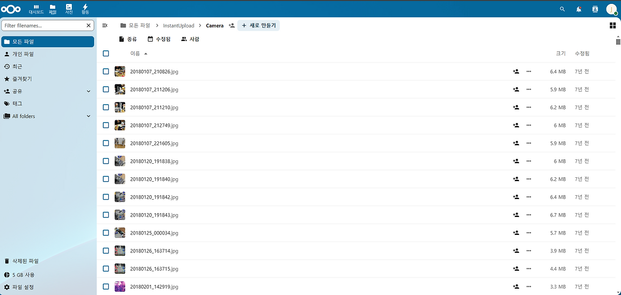 NextCloud APP을 통하여 자동 업로드를 활성화하여 사진들을 백업해봤다.
